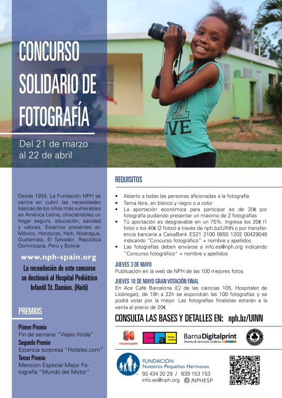 Organizado por la FUNDACIÓN NUESTROS PEQUEÑOS HERMANOS tenemos oportunidad de colaborar, ayudar y participar con nuestras fotografías en un concurso, cuya finaliza es colaborar con el Hospital Pediátrico Infantil St. Damien (Haiti)