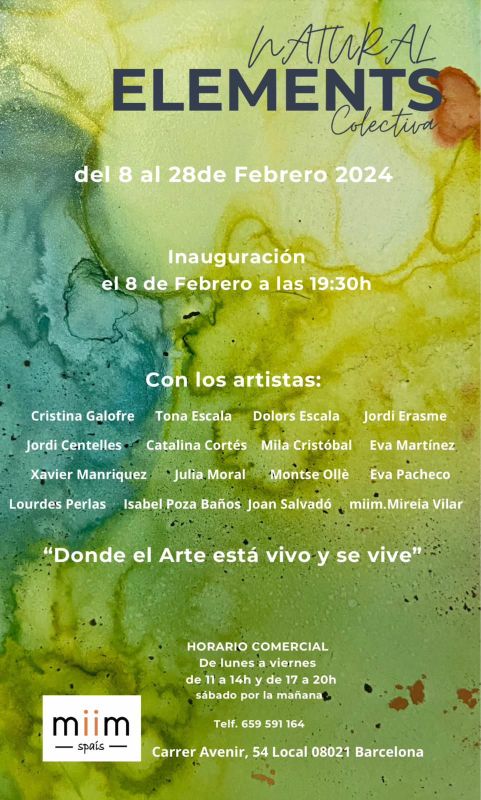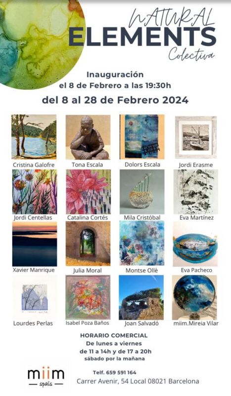 Exposición colectiva basada en los cuatro elementos básicos, tierra, agua, aire y fuego.